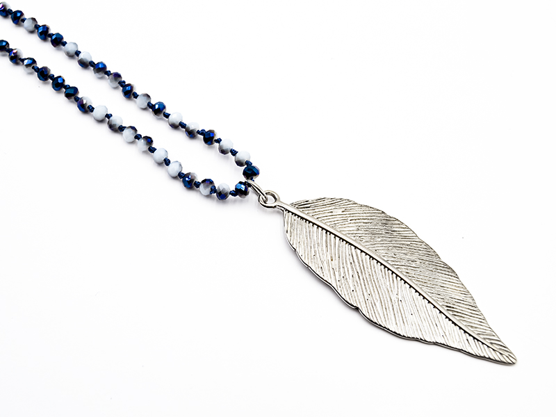 Glassteinkette ''Feder'' (Gesamtlänge: ca. 52cm)